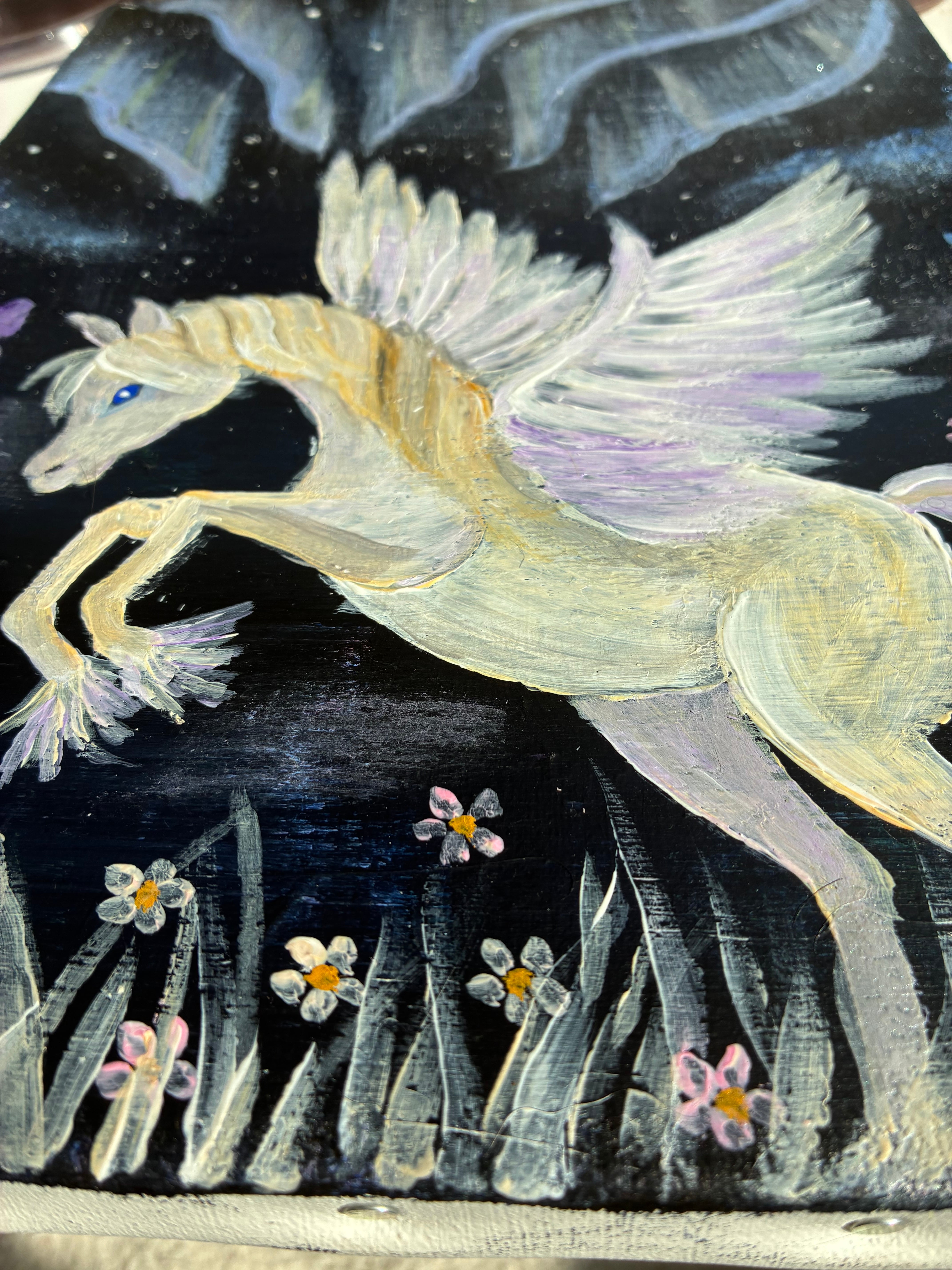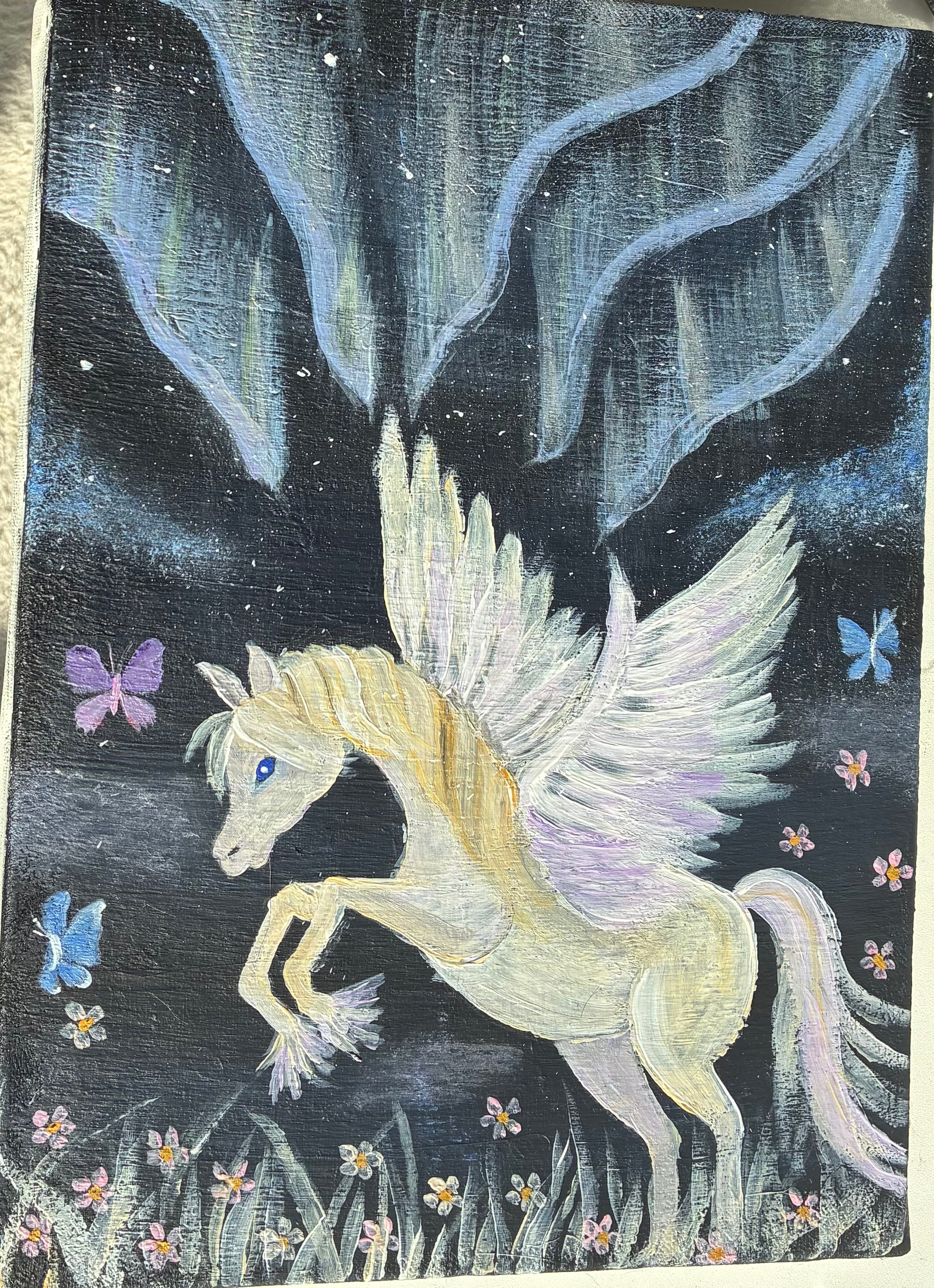 サイズはF4です!ペガサスの絵は2回目の作品になります。優しい気持ちになってくれると嬉しいです。