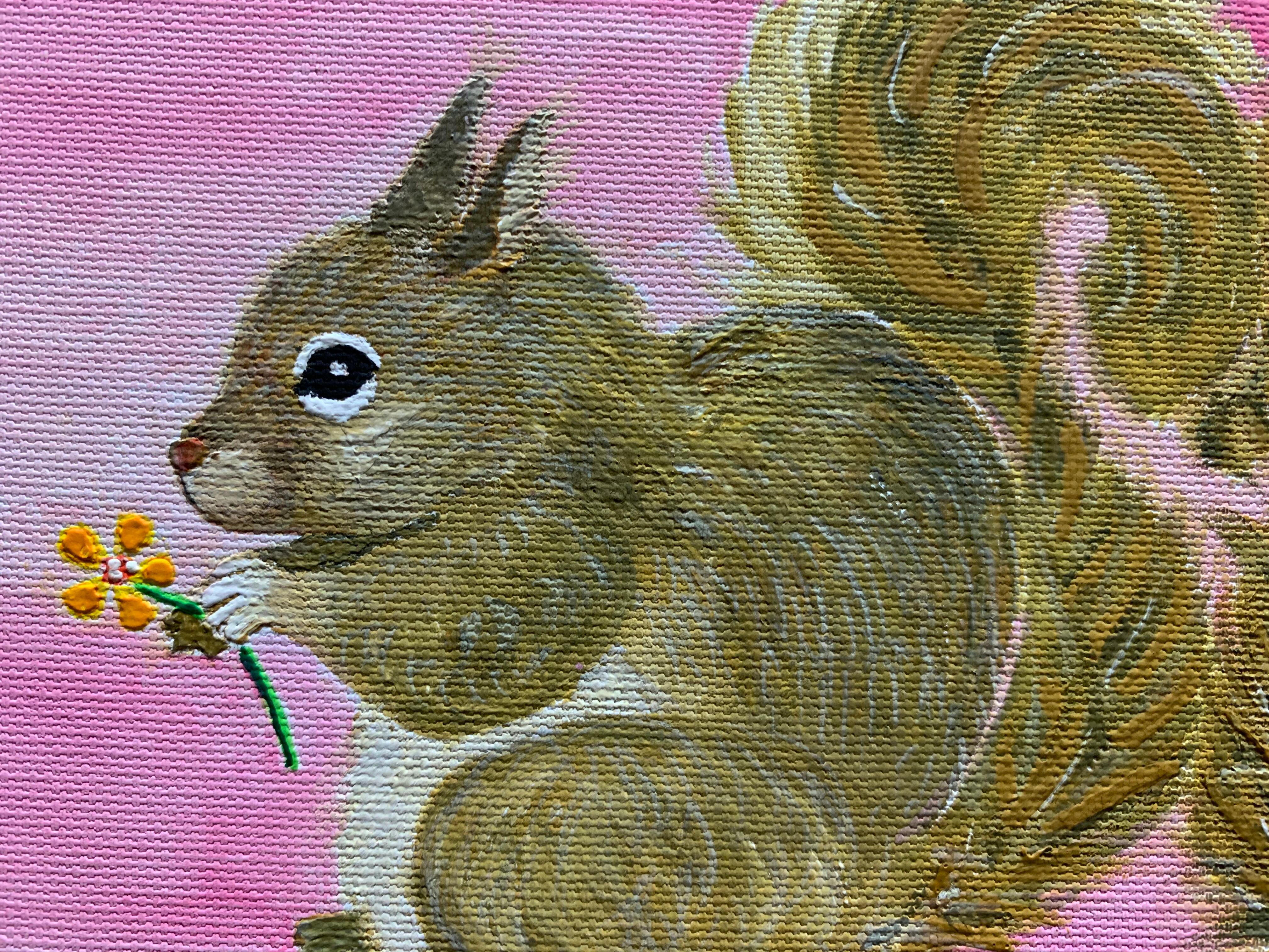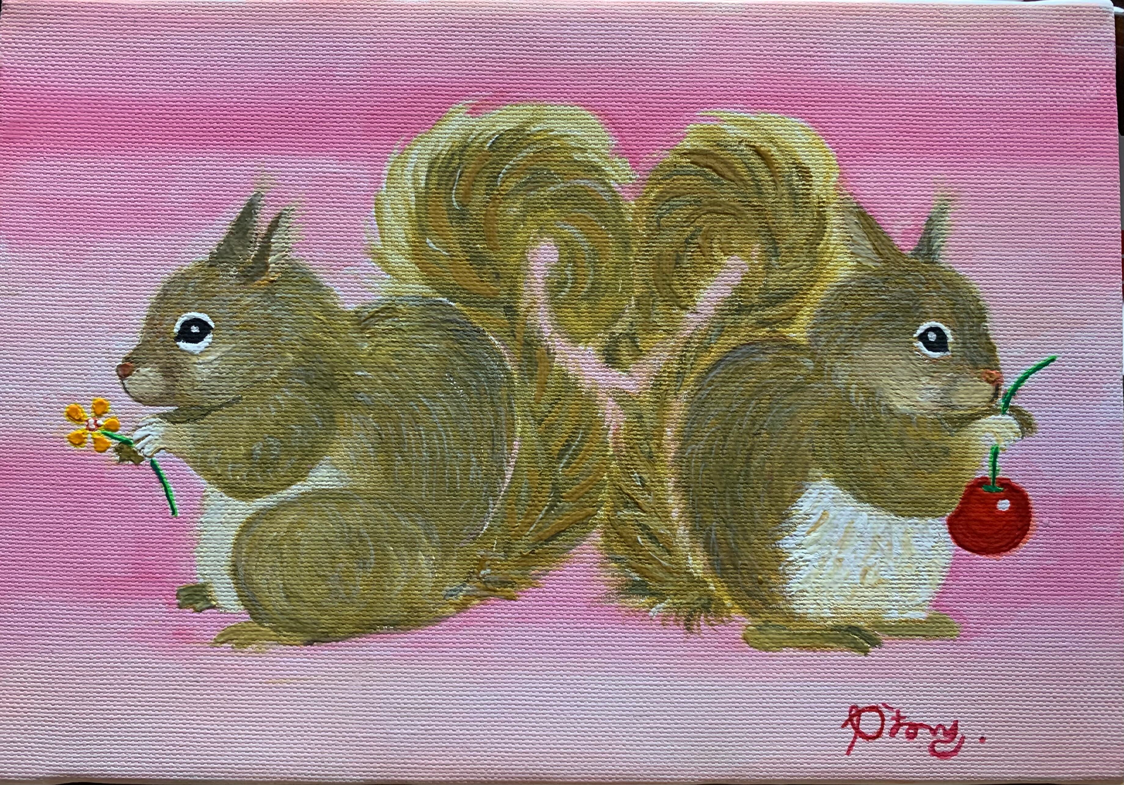 恋してるりす達を描きました。お互いにプレゼントを持っています。2匹のりすの可愛さと、大好きな気持ちをしっぽのハートで表現してみました。