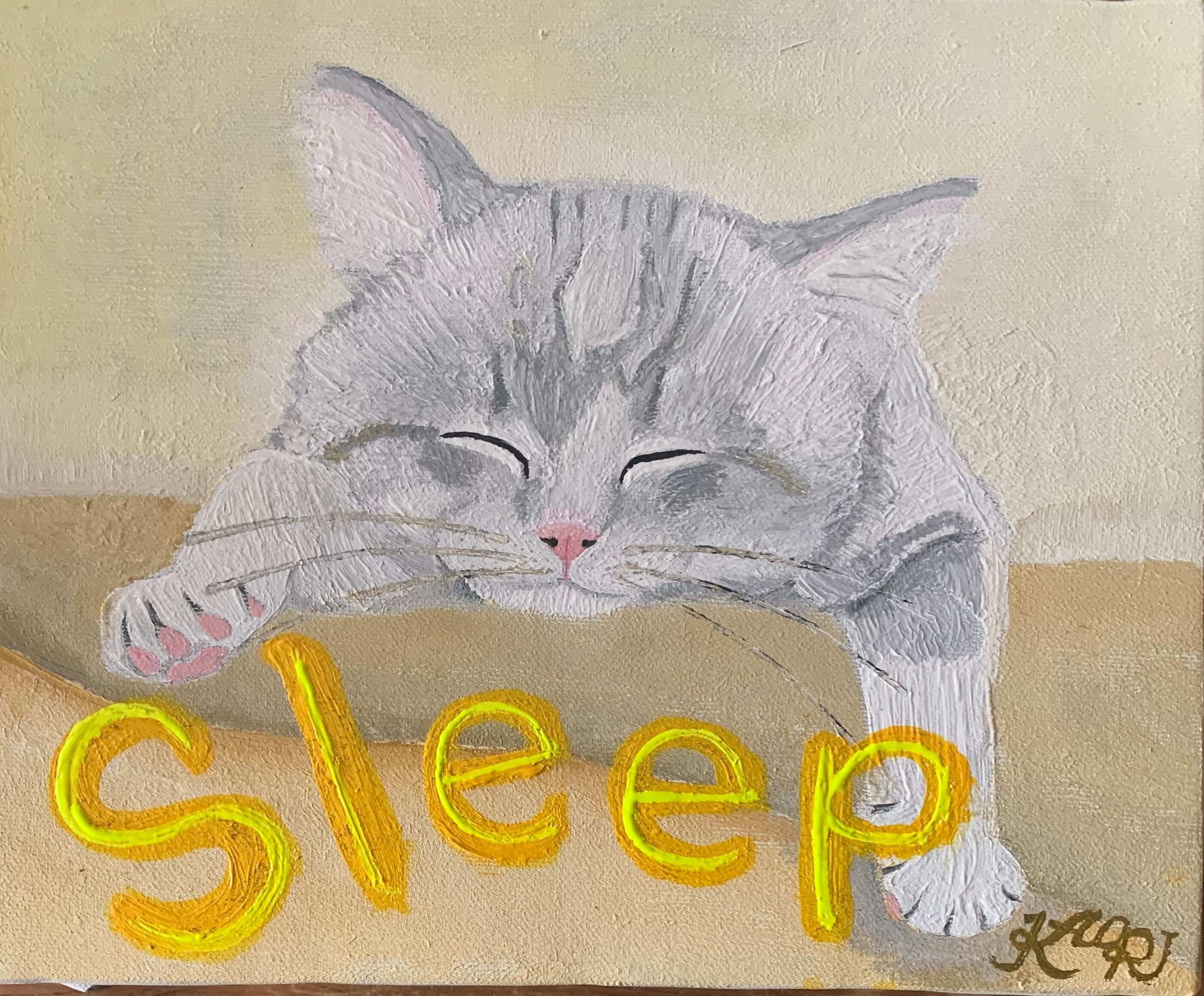サイズはF3です!ぐっすり眠る猫ちゃんを描きました。 文字を描いてPOPな感じを出して、部屋に飾りやすくしてみました。見る方々からも可愛いと感じて頂けたら幸せです!